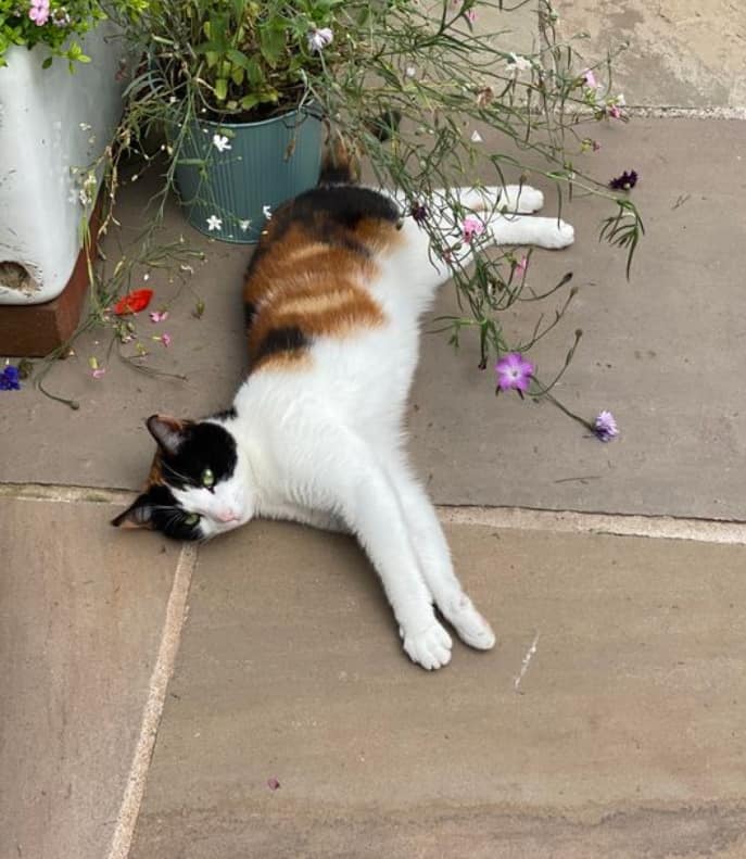 Cotty is a lovely adult female we took in last year from the 40+ cat colony we've been working hard to neuter for a few months now. When we took her to be spayed, the vet found she had no reproductive organs at all, but what she did have was an enlarged spleen and lymph nodes. This obviously cast doubt on being able to return her to the colony, in case she became ill. Being a timid but gentle girl who was quite settled with us, we decided to keep and monitor her... the right decision as she later developed hemolytic anaemia, a challenging condition which thankfully, after many blood tests and steroids (and some very large vet bills!!) seems to have things moving in the right direction for lovely Cotty.