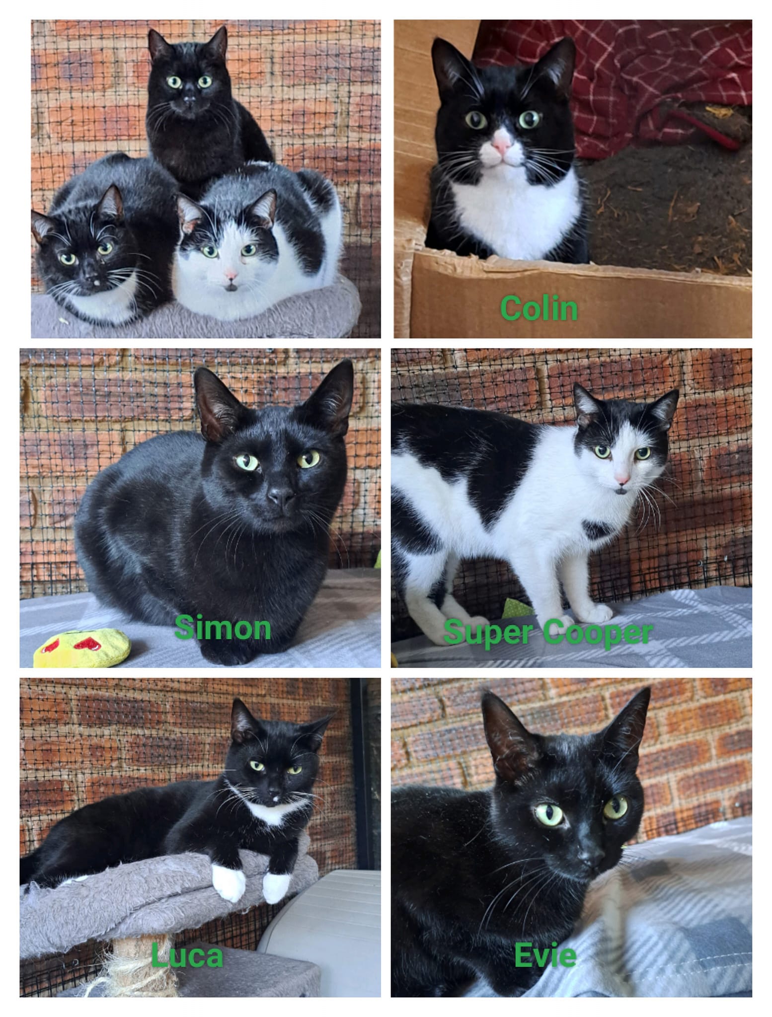 These beauties have been with us for such a long time... almost 2 years! They've made such good progress since being brought in at 8-10 weeks old, very feral kittens born to a farm cat. Being feral it's taken a long time to get them to the stage where they are calm and sociable; they now enjoy interacting with us (although Super Cooper and Colin are still very skittish) and need quiet homes with patient people who can bring them on even further. We would like to re-home them in pairs/groups as they're all so close and this will help them gain confidence in a new home. These cats would benefit from experienced owners who understand it could take a long time for them to settle. There will be lots of hiding and it's very much a case of letting them come to you... these things can't be rushed! They will also need to be indoor cats for the foreseeable future until they settle and gain confidence. These cats are so beautiful, they really deserve loving homes... with time and patience they will make absolutely super pets with so much love to give! Please contact us if you think they could be the ones for you